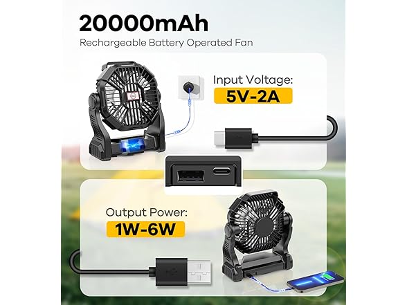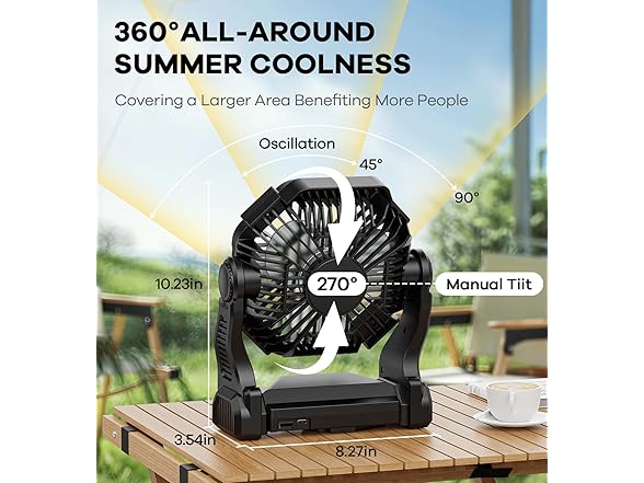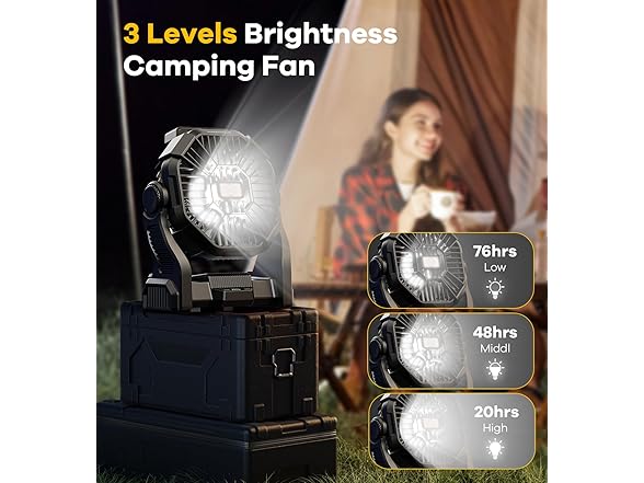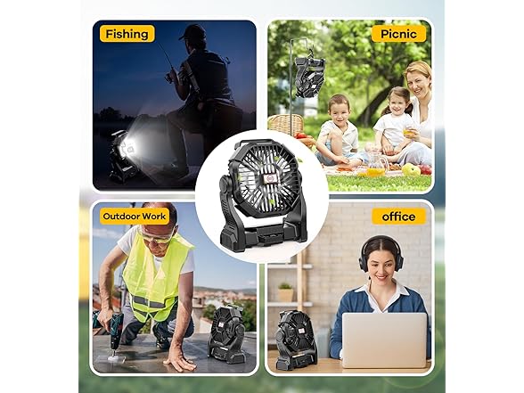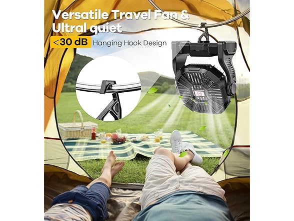 30000mAh Portable Battery Powered Camping Fan - with LED Light, Quiet Battery Operated, Camping Gear for Travel, Tent, Beach, Car or Hurricane Power Outages, Black