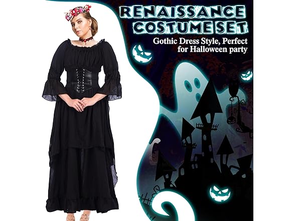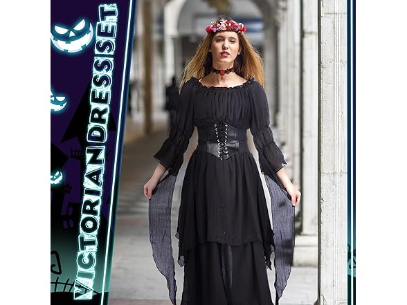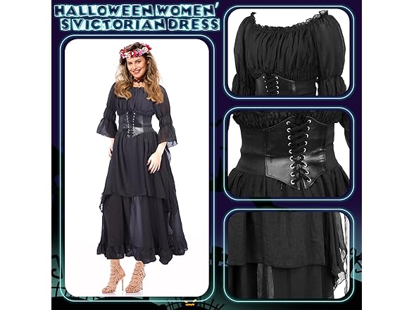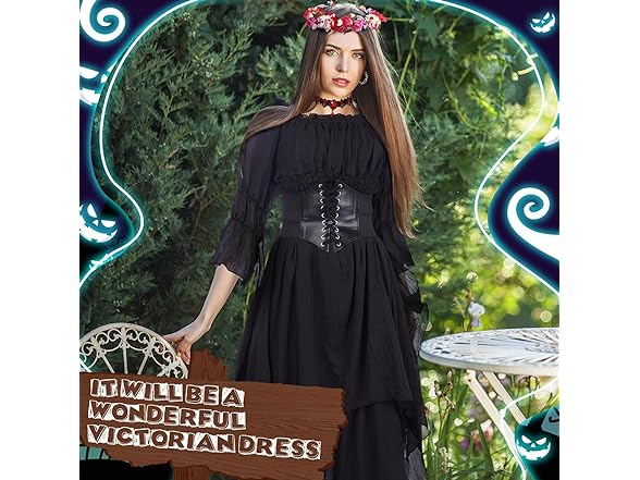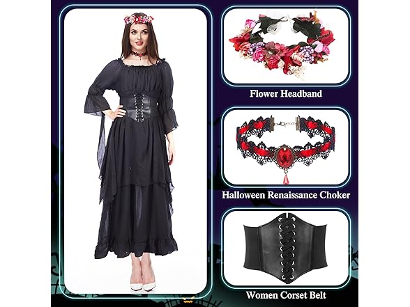- Nice Halloween Outfit: this set is an ideal option for someone looking to dress for Halloween; With its spooky black color scheme and included flower crown and lace choker, it's the ideal choice for a spooky costume party; The Victorian corset can help to show off your natural curve as well