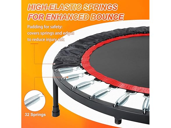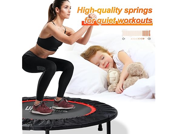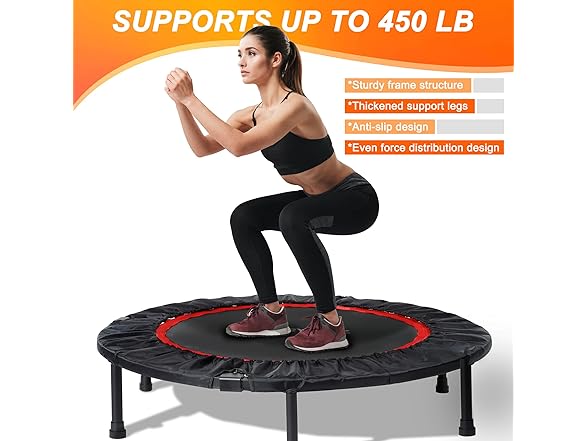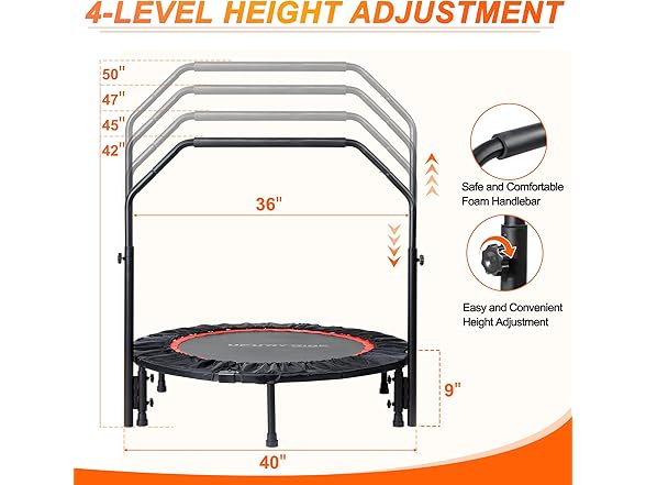 40"/48" Foldable Mini Trampoline for Adults 450/600 LB Rebounder Trampoline with Adjustable Foam Handle for Home Gym Small Exercise Trampoline for Indoor or Garden Workout