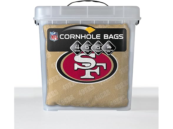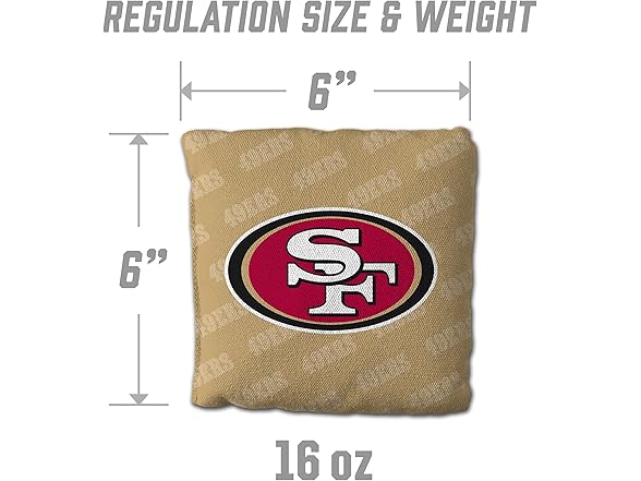 YouTheFan Officially-Licensed NFL San Francisco 49ers Set of 4 Cornhole Bags - All Weather Regulation 6” x 6” Size - 16oz Weight - Designed in USA