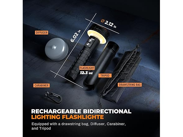 - 【Ergonomic Non-Slip Grip and Glow-in-the-Dark Feature】This compact flashlight, measuring 6.02 inches and weighing 12.3 ounces, features a textured, non-slip handle for a secure and comfortable grip, even in wet or rugged conditions. Its glow-in-the-dark after using functionality ensures it’s easy to find in low-light environments, maintaining effectiveness even with the light diffuser attached. Designed for versatility, it can be conveniently stored in the included drawstring bag for easy portability. Ideal for camping, hiking, outdoor cooking, or car camping, whether you're exploring, repairing, or enjoying the outdoors, it delivers consistent, hands-free lighting whenever you need it.
