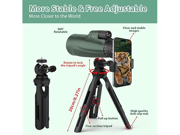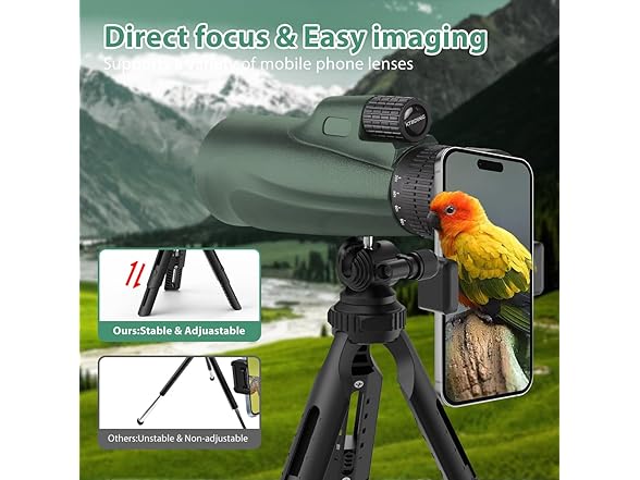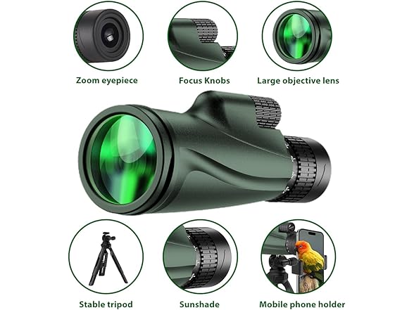 80x100 High Power Monocular Telescope with Smartphone Adapter Tripod, Larger Vision Monoculars for Adults with BAK4 Prism & FMC Lens, Suitable for Bird Watching Hunting Hiking Camping Wildlife