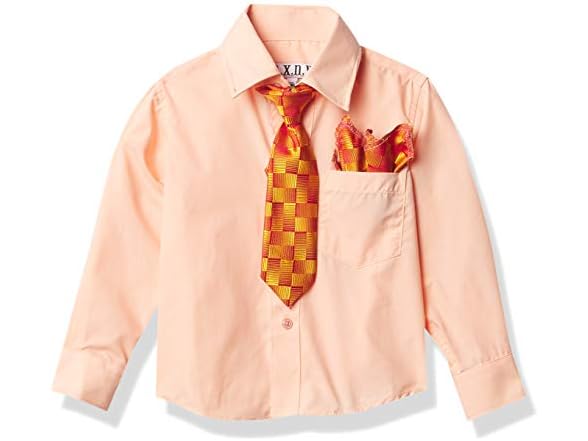 a.x.n.y Boys' Long Sleeve Button Down Shirt with Tie and Pocket Square Combo Set, Peach, 3