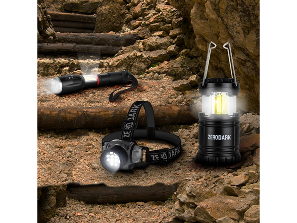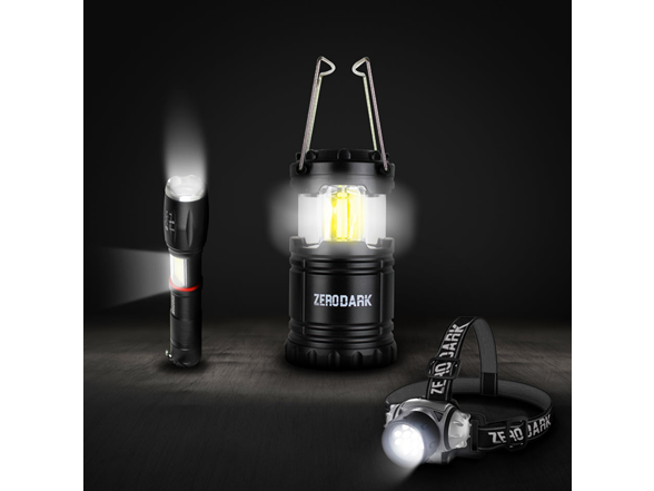 Aduro 3 Pc Tactical Lighting Set with Flashlight, Lantern, & Headlamp