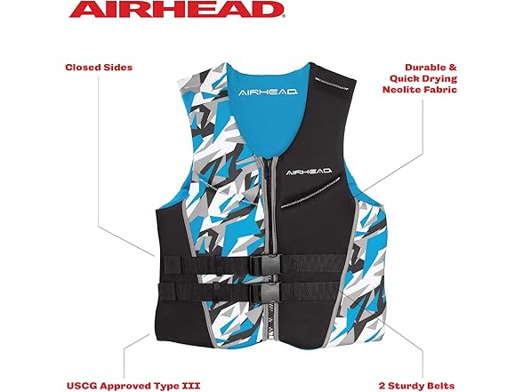 AIRHEAD Men's Camo Cool Neolite Kwik-Dry Life Jacket, Coast Guard Approved