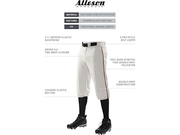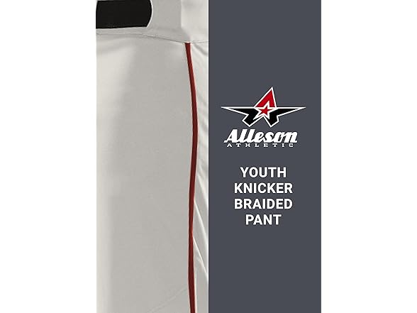 Alleson Athletic Boys' Crush Knicker Braided Baseball Pant, White/Red, L