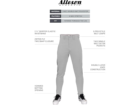 Alleson Athletic Boys' Crush Tapered Baseball Pant, Grey, X-Small