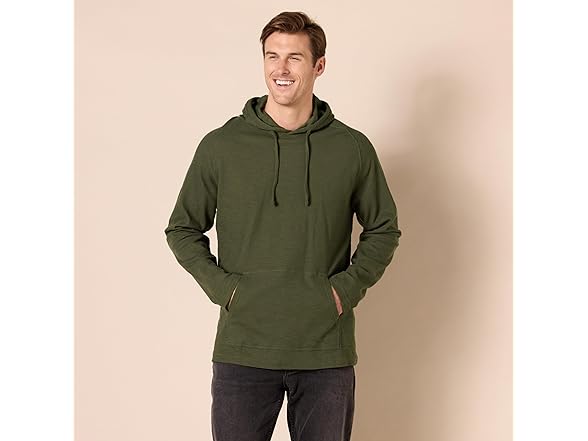 - Previously sold under the Goodthreads name, this essentials sweatshirt combines comfort and style in one versatile piece. Designed for a regular fit, it offers an easy fit through the shoulders, chest, and waist, making it a great essential hoodies for men seeking both comfort and trendiness. Made from lightweight slub cotton thermal, this fabric is intricately knit into a thermal stitch, providing the softness you desire with a distinctive slub texture. As a modern twist on your favorite t-shirt, this pullover serves as the ideal fall layer. The men's essential hoodie features a single layer hood with an adjustable drawcord, allowing you to customize your fit. The rib trim at the sleeve hem and convenient hand pocket add functional detailing, elevating its appeal as a winter hoodie for men. Whether layered under a coat or worn on its own during mild weather, it adds a stylish touch to your collection of men's clothes. It's a staple piece that compliments any selection of trendy hoodies or men's shirts, making it a go-to choice when considering clothes for men. This men's essential hoodie stands out while keeping you warm and comfortable.