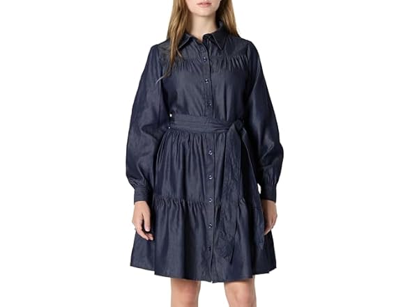 Amazon Essentials Womens Chambray Tiered Dress