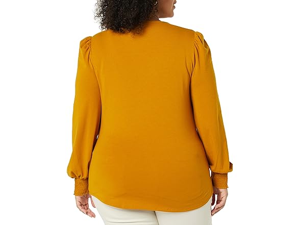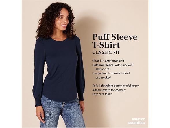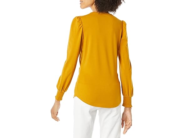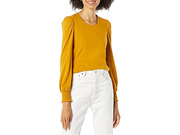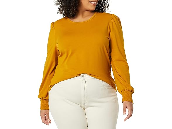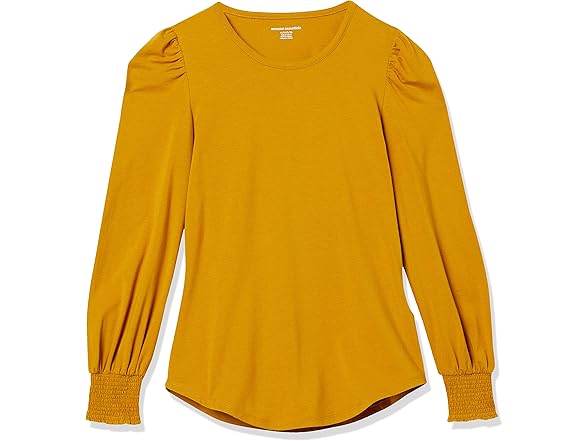 Amazon Essentials Women's Long-Sleeve Crewneck Smocked Cuff T-Shirt, Tobacco Brown, Small