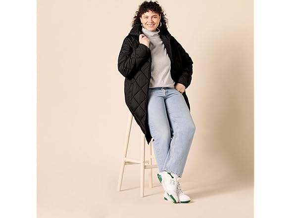 Amazon Essentials Womens Puffer Jacket Heavyweight Diamond Quilted Knee Length Winter Coat