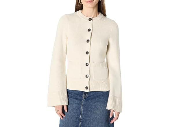 Amazon Essentials Womens RegularFit LongSleeve Cardigan with Bell Sleeves and Shaped Waist