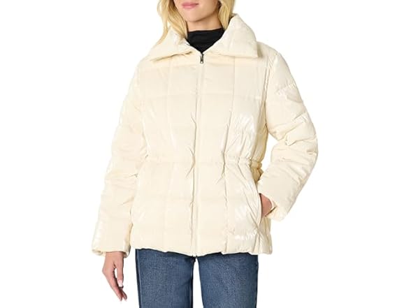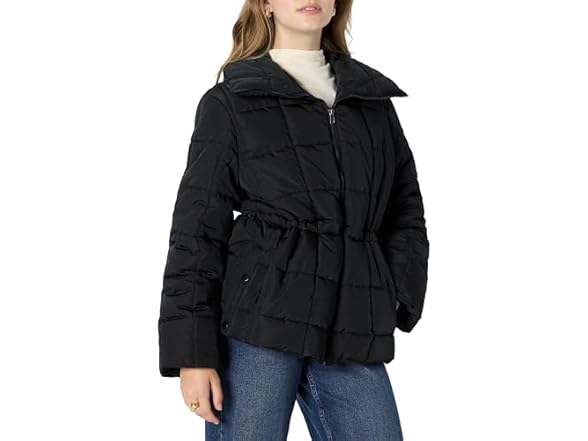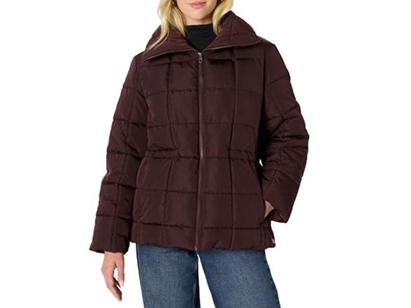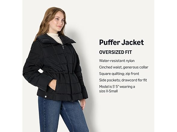 Amazon Essentials Womens Oversized Fit Square Quilted Puffer Jacket with Adjustable Waist