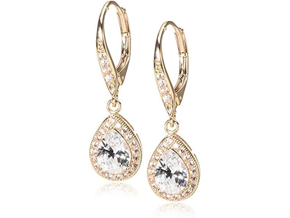 Anne Klein "Classics" Gold-Tone Cubic Zirconia Leverback Pear Shape Drop Earrings