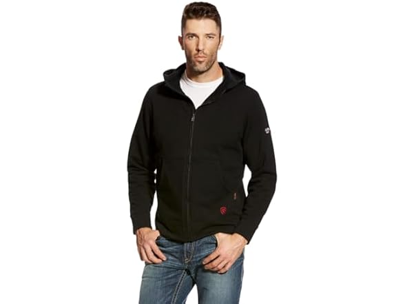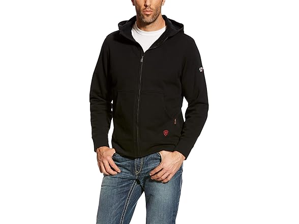 - FLAME RESISTANT HOODIES FOR MEN: Made from 11 oz ultra-soft fleece, this Ariat hoodie delivers comfort, protection and style in a single full zip performance layer. Instant warmth, ease of movement, and embroidered logos—this hoodie's got your back.