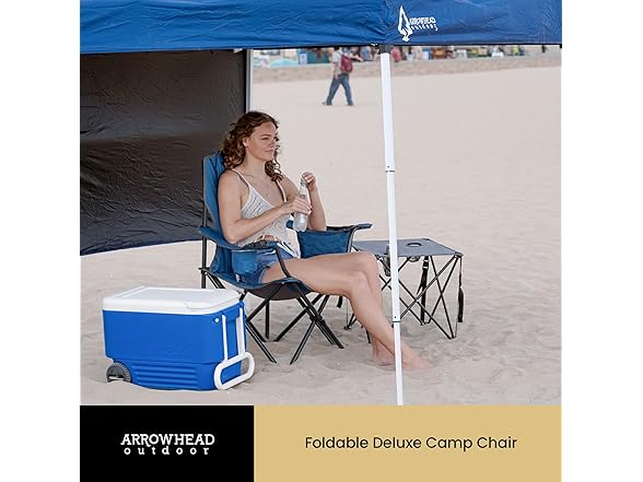 - Folds compactly into a heavy-duty carry bag with shoulder strap for easy transport, and includes a mesh back storage compartment to stash accessories like hats, sunglasses or snacks.
