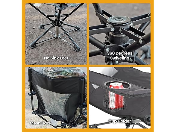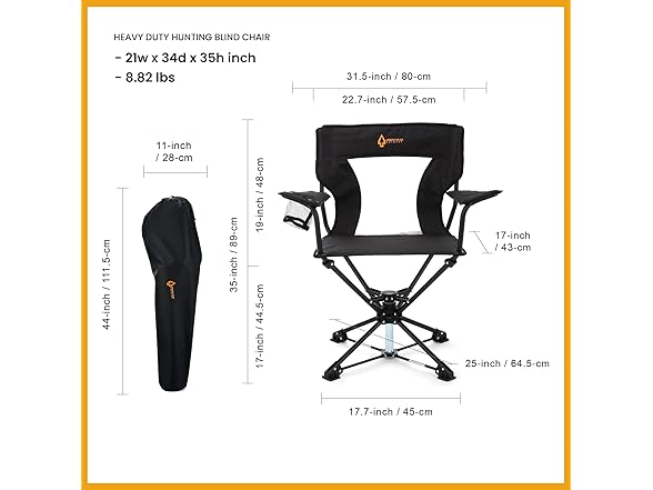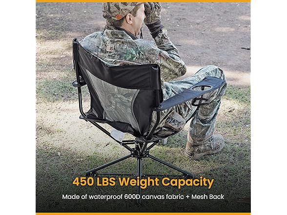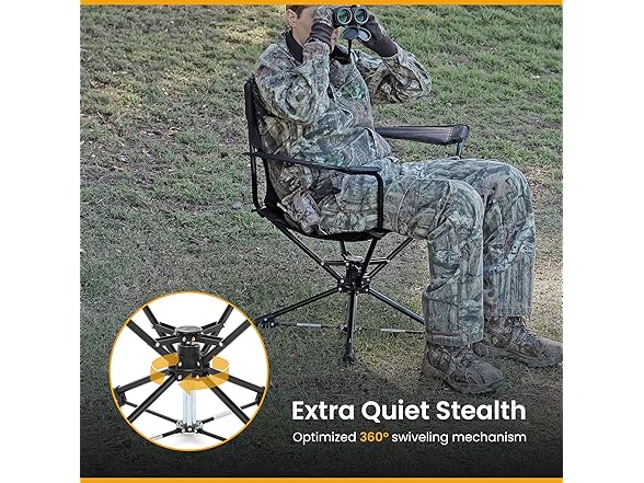 - [SILENT & STEALTHY 360° DEGREES OF ARTICULATION] – Effortless and quietly spins 360° for maximum mobility. Never spook a buck, tom, or boar. Includes adjustable armrests for perfect positioning.