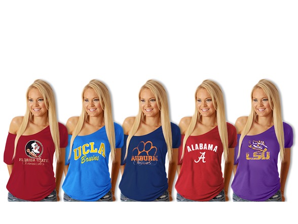 This off the shoulder lightweight drape tee is sure to turn heads not just on game day but every day, a definite must have piece in your closet. Soft touch fabric feels very comfy against body.