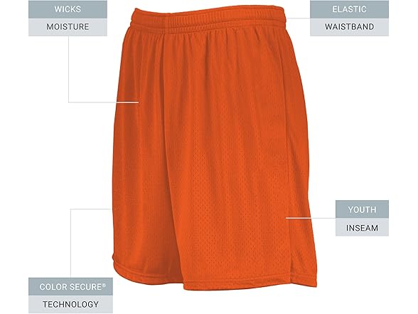 Augusta Sportswear Boys' Standard Youth Modified Mesh Shorts, Orange
