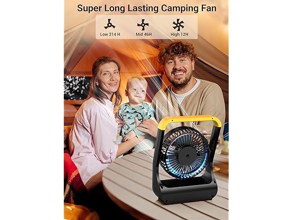 - Battery Operated Fan for Camping: This 5 inch battery fan works with 4 D-cell batteries (not included), which is ideal for camping, travel, power outages and emergency needs. There are 3 settings and the fan can last for 214 hours with low speed, 46 hours with medium speed, and 12 hours with high speed!