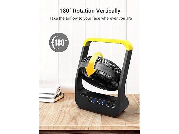 - Rotation and Portability: The 180° rotation design lets you take the fresh air directly to your face and get cool instantly. With the comvenient handle, it is easy to carry around. Great for travel, camping and other outdoor activities use.