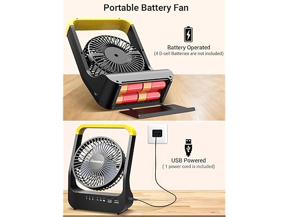 - Battery Powered USB Fan: Except powered by D batteries, this fan can be a USB desk fan. It comes with a USB cable that can be used when connected to a power bank, car charger, computer, or a 5V wall USB charger. Note: it is also compatible with carbon D battery, alkaline D battery or rechargeable NiMH battery.