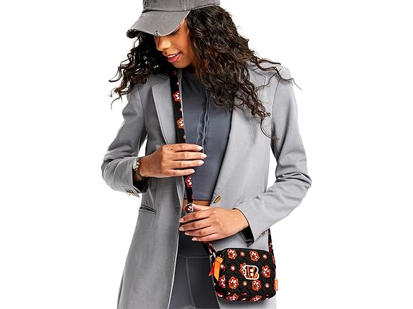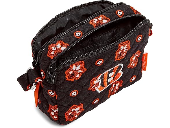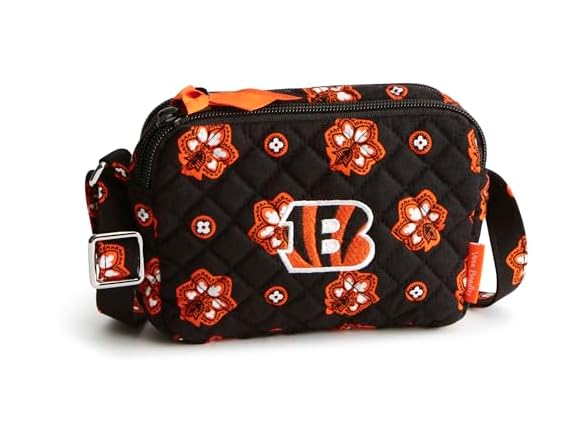 Vera Bradley Women's Cotton NFL Small Stadium Crossbody Bag (Multiple Teams Available), Black/Orange Bandana with Cincinnati Bengals