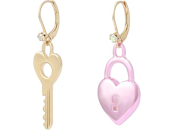Betsey Johnson Jewelry Womens Sweetheart Lock & Key Drop Earrings