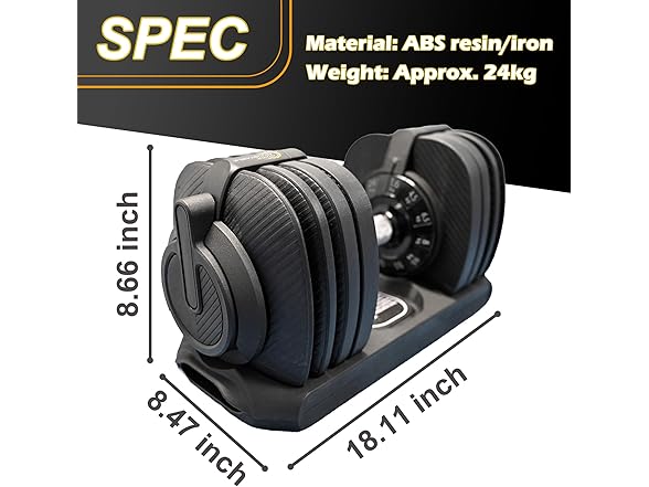 BodyTech 53lbs/24KG Quick Adjustable Dumbbell | 1-Second Weight Adjustment & Safety Lock | Anti-Slip Metal Handle | Space Saver for Home Gym (Single Dumbbell)