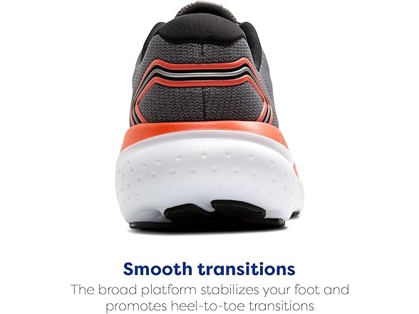 - SMOOTH, STABLE TRANSITIONS: The broad platform stabilizes your foot and promotes smooth heel-to-toe transitions.