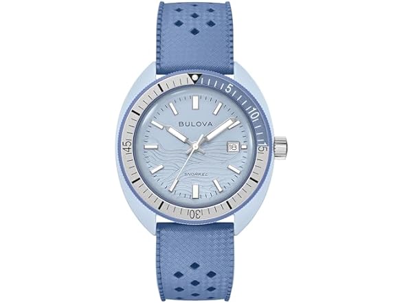 Bulova Oceanographer Snorkel Amazon Exclusive Ceramic Case and White Perforated Rubber Strap Watch, Day Date 100M WR