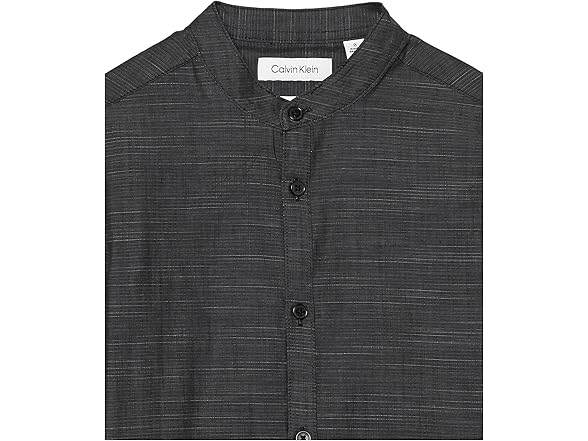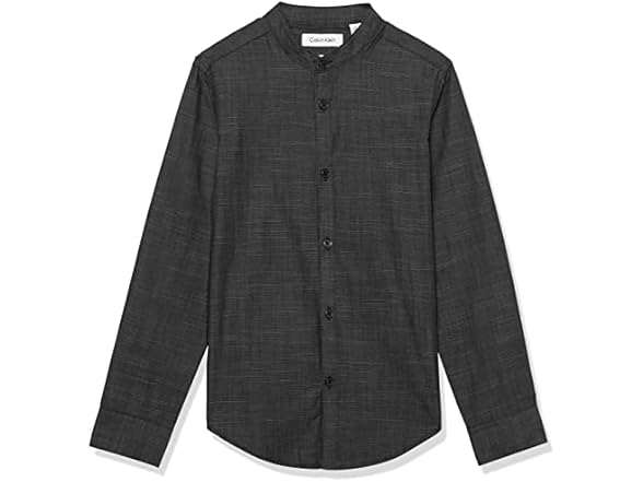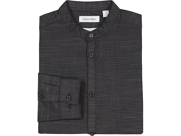 Calvin Klein Boys' Long Sleeve Patterned Dress Shirt, Button-Down Style with Buttoned Cuffs, Black Slub, 16