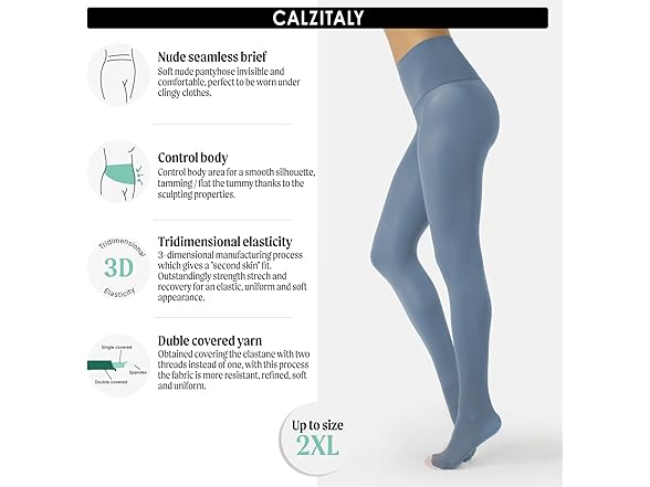 CALZITALY seamless tights, no seam pantyhose, opaque tights | black, blue | 50 den | S, M-L, L-XL, XXL | italian hosiery |(L-XL, Dusty Blue)