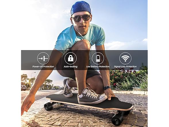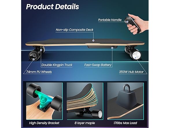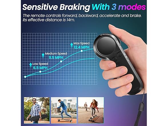 Caroma Electric Skateboards with Remote, 350W Powerful Brushless Motor, 12.4MPH Top Speed, 13 Miles Max Range, Various Speeds Adjustable, Electric Longboard for Adults and Teens, Suitable for Beginners