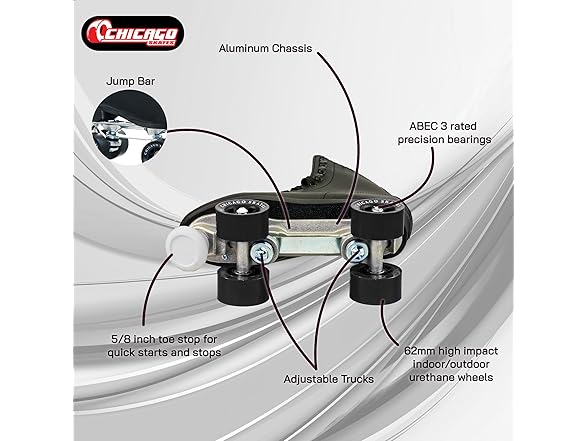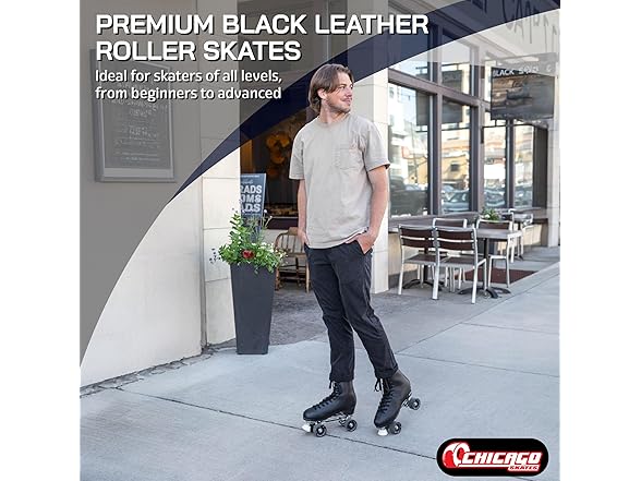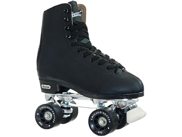 CHICAGO Skates Men's Premium Leather Lined Rink Roller Skate - Classic Black Quad Skates - Size 6, 8