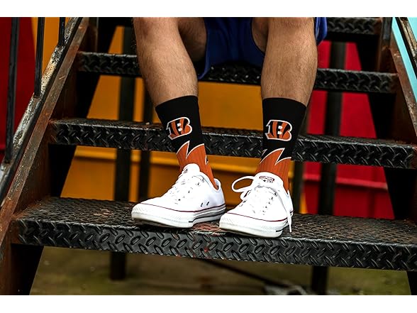 For Bare Feet NFL CINCINNATI BENGALS Black Wave Crew Sock Team Color LARGE