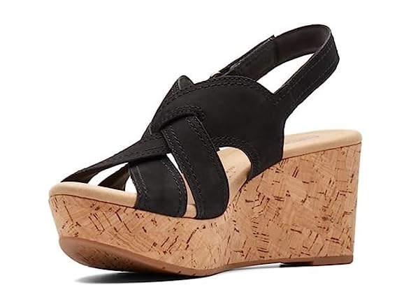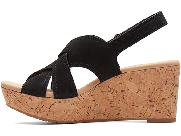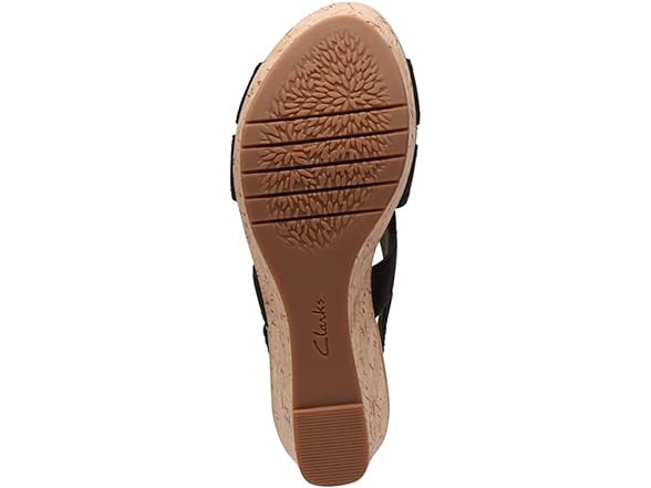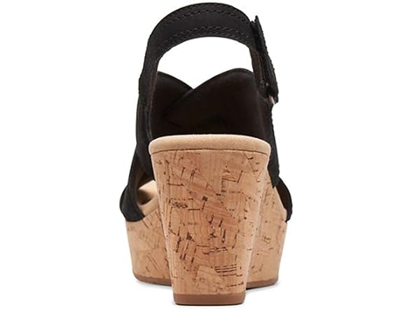 Clarks Women's Rose Erin Wedge Sandal, Black Nubuck, 10 Wide