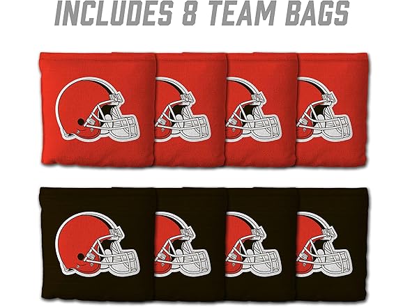 YouTheFan Officially-Licensed NFL Cleveland Browns Set of 8 Cornhole Bags - All Weather Dual Sided Slide & Stop - Regulation Size with Carry case