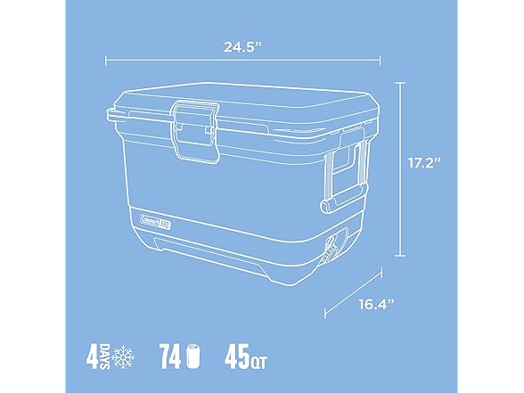 - 74-CAN CAPACITY: 45 quarts holds up to 74 cans without ice.