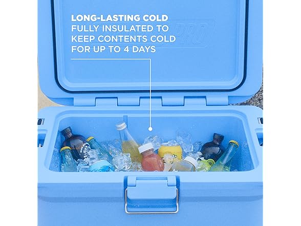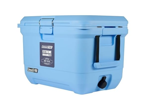 You work hard for your time off. You deserve gear that goes above and beyond. Meet the Coleman Pro series, designed for those who expect more. This 45-quart hard cooler stays cold for up to 4 days thanks to a fully insulated lid and body featuring extra thick walls up to 2 inches wide. Use its rugged handles to comfortably trek from backyard to beach to tailgate to sidelines, while the stainless steel latch allows you to open and close the cooler with one hand. Extra-wide drain plug is attached so you can drain fast without losing track of the plug. Tie-down straps and non-slip feet let you securely rig your cooler in the bed of your truck or in the D-rings of your raft, while a pad-lock opening lets you add extra security. The Have-A-Seat lid is built to accommodate an extra guest when you run out of seats around the campfire, at the game, or out back. Best of all, these built-to-last features are backed by our 10-year limited warranty, so you can confidently bank on Pro performance for all your trips to come.