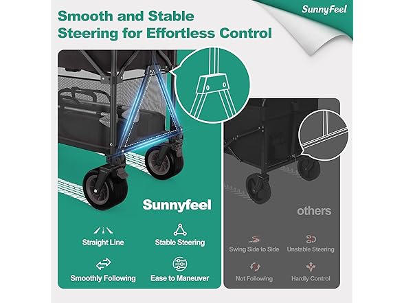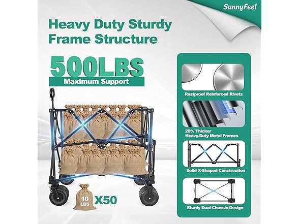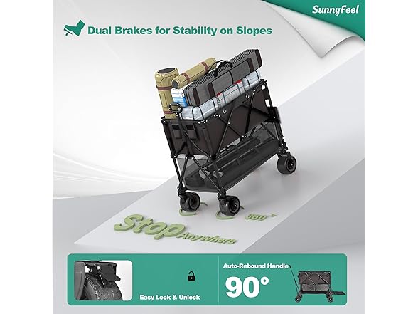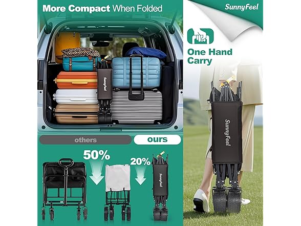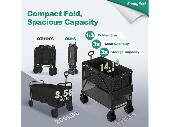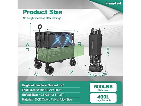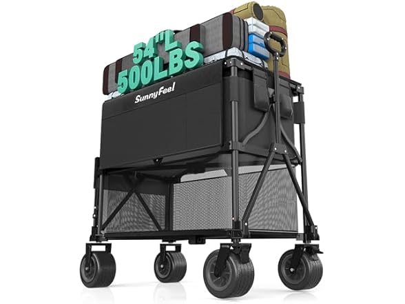 SUNNYFEEL Double Decker Wagon, 500 lb Heavy Duty Collapsible Utility Wagon with Adjustable Handle, Foldable Wheels for Garden, Camping, Shopping (Black, Double Deck)