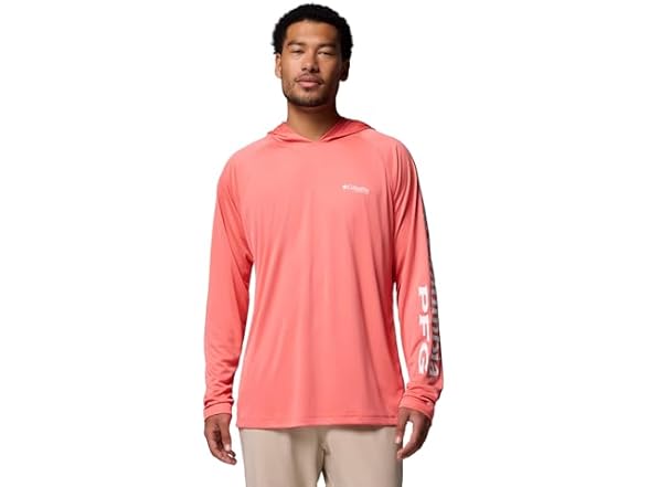 Keep your cool on and off the water with this PFG hoodie, featuring UPF 50 sun coverage and quick-drying fabric that wicks away sweat. Perfect to wear as a base layer or on its own. This technology loaded long sleeve hoodie is necessity for any day out on the open water. Made up of a combination of Columbia’s signature protection fabrics: UPF 50 tech works to block and shield you from harmful UVA and UVB sun rays known to cause skin damage, while the advanced wicking fabric works to pull perspiration and water away from the skin, keeping you dry and comfortable. Columbia offers this fishing-ready shirt in multiple staple colors and sizes. Relaxed and Regular Fit. To ensure the size you choose is right, utilize our sizing chart and the following measurement instructions: For the sleeves, start at the center back of your neck and measure across the shoulder and down to the sleeve. If you come up with a partial number, round up to the next even number. For the chest, measure at the fullest part of the chest, under the armpits and over the shoulder blades, keeping the tape measure firm and level.