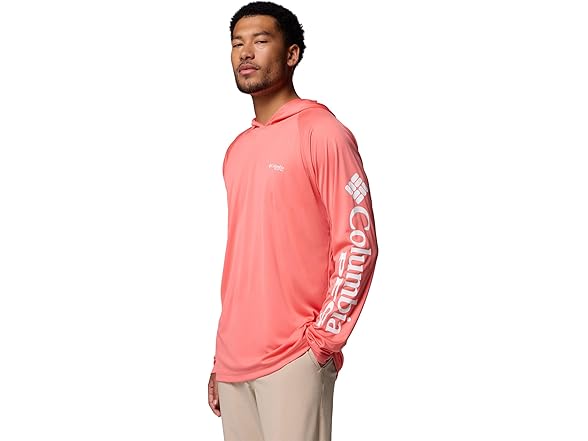 Keep your cool on and off the water with this PFG hoodie, featuring UPF 50 sun coverage and quick-drying fabric that wicks away sweat. Perfect to wear as a base layer or on its own. This technology loaded long sleeve hoodie is necessity for any day out on the open water. Made up of a combination of Columbia’s signature protection fabrics: UPF 50 tech works to block and shield you from harmful UVA and UVB sun rays known to cause skin damage, while the advanced wicking fabric works to pull perspiration and water away from the skin, keeping you dry and comfortable. Columbia offers this fishing-ready shirt in multiple staple colors and sizes. Relaxed and Regular Fit. To ensure the size you choose is right, utilize our sizing chart and the following measurement instructions: For the sleeves, start at the center back of your neck and measure across the shoulder and down to the sleeve. If you come up with a partial number, round up to the next even number. For the chest, measure at the fullest part of the chest, under the armpits and over the shoulder blades, keeping the tape measure firm and level.