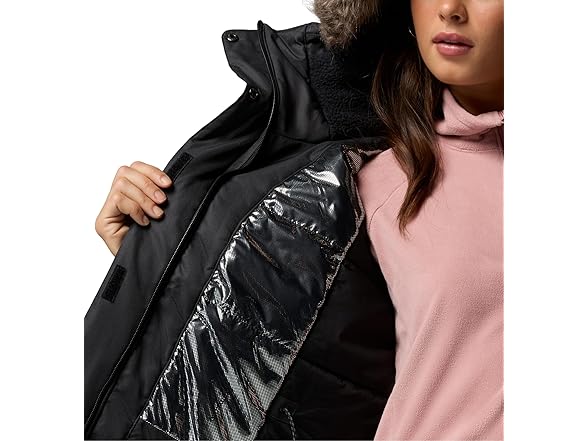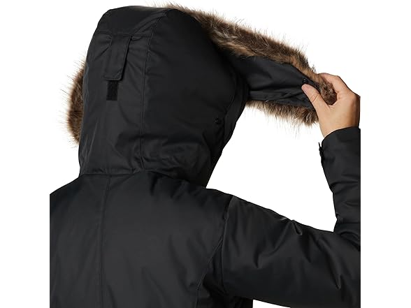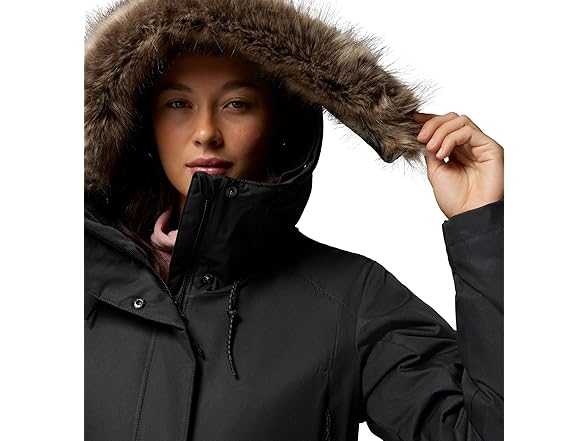 This Columbia women’s parka is insulated and thermal-lined to fend off frigid temps in style. A fleece-lined hood dials up the cozy, while the water-resistant shell repels light rain. Remove the faux fur trim to instantly switch up the look. Columbia offers this jacket in multiple colors and sizes. Extended sizing available. Regular fit.