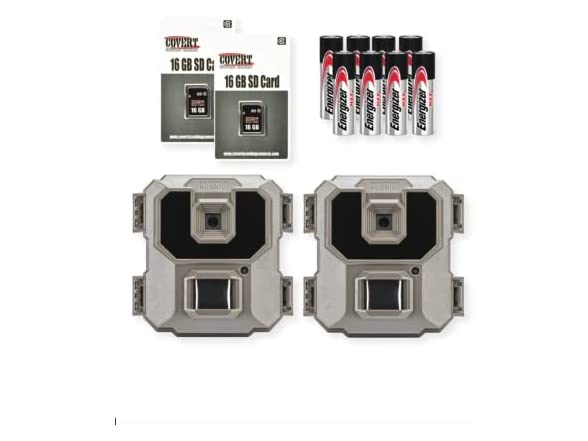 - TWO-PACK BUNDLE - The MP9 2-Pack Bundle from Covert Scouting Cameras comes with 2 cameras, 8 AA batteries and 2 16GB SD cards. This pack is a great way to take inventory of your deer herd or keep an eye on your property