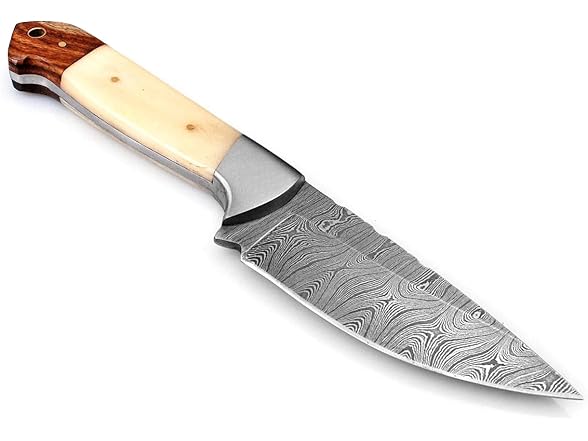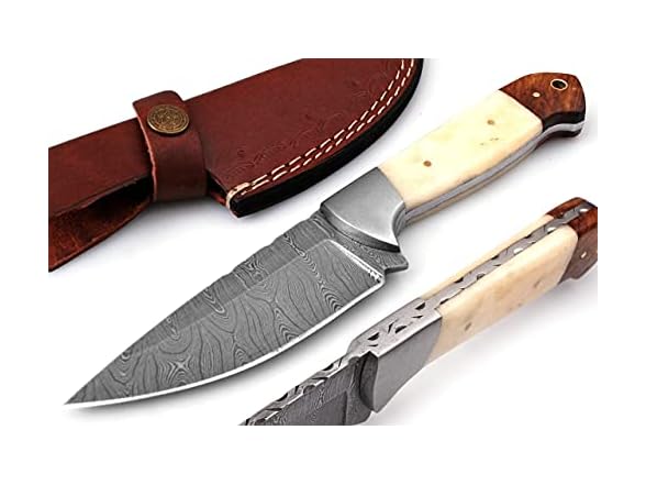 - ✔️LEATHER SHEATH :- The fixed Damascus Steel blade comes with a complimentary High Grade leather Sheath . The sheath has a belt loop this practical holder allows you to wear the hunting knife on your belt to ensure that your knife is well protected and allows you to securely and safely carry the knife around.