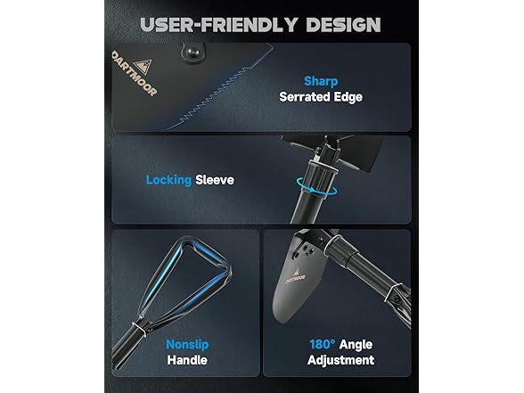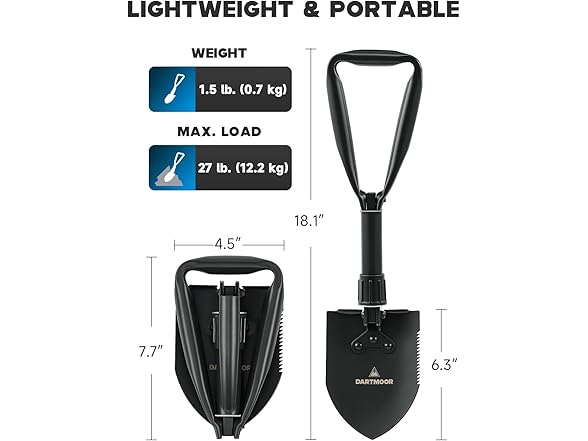 DARTMOOR Mini Folding Shovel High Carbon Steel, Portable Lightweight Outdoor Tactical Survival Foldable Mini Shovel, Entrenching Tool, Camping, Hiking, Digging, Backpacking, Car Emergency