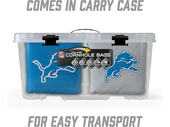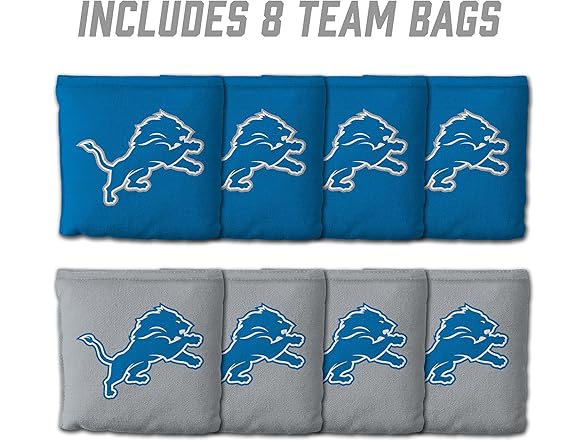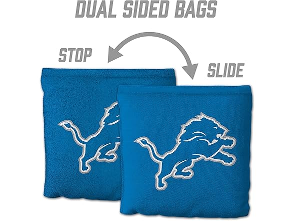 YouTheFan Officially-Licensed NFL Detroit Lions Set of 8 Cornhole Bags - All Weather Dual Sided Slide & Stop - Regulation Size with Carry case