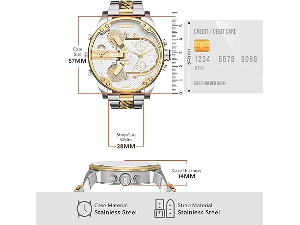 Diesel Mr. Daddy 2.0 Men's Watch with Oversized Chronograph Watch Dial and Stainless Steel, Silicone or Leather Band
