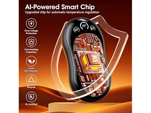 【UL Certified Safety & USB-C Fast Charging】Warm up with complete peace of mind. Our rechargeable hand warmers are UL certified, featuring an intelligent temperature control chip to prevent overheating. The modern USB-C port ensures quick, convenient, and reliable charging for daily use. Enjoy the safety of our electric hand warmer without the worry.